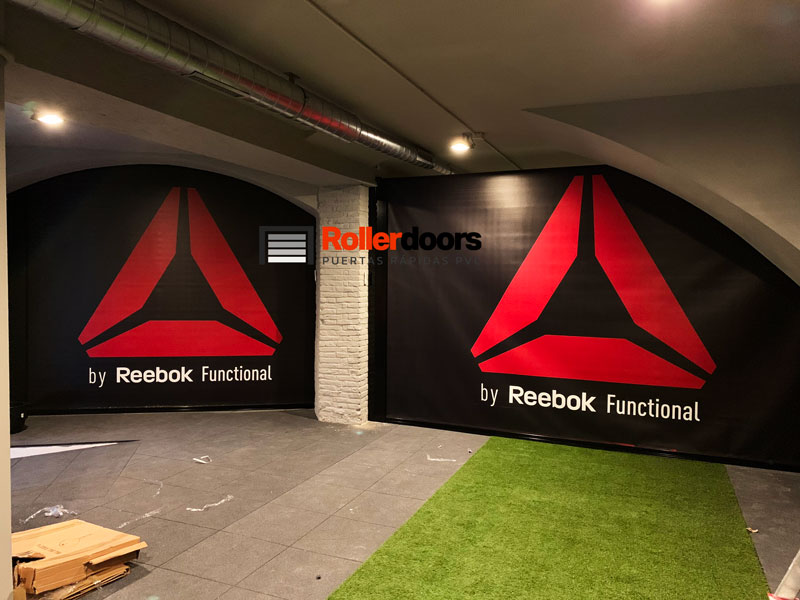 Puerta totalmente personalizable en cualquier color de la carta Ral y cualquier tipo de serigrafía en lona.